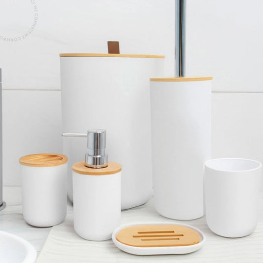 Kit 6 Peças Banheiro com Tampa de Bambu