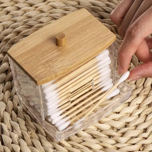 Porta Cotonete e Algodão em Madeira e Acrílico