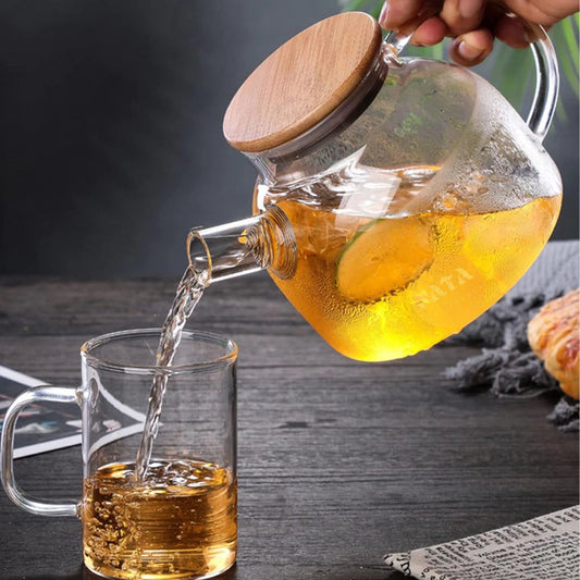 Chaleira de Vidro 1L com Coador Tampa de Bambu Premium