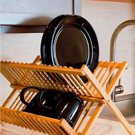 Escorredor de Pratos de Bambu com Divisórias