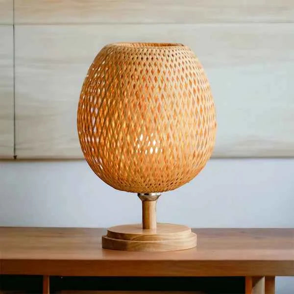 O Abajur de Mesa em Tecelagem de Bambu Rattan com LED traz um toque de sofisticação rústica e sustentável para qualquer ambiente.