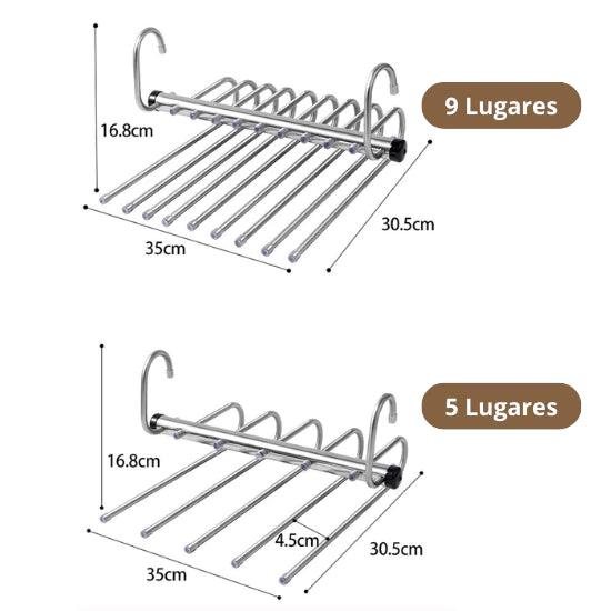 O cabide oferece um design moderno e funcional, ideal para quem busca praticidade e estilo. Suas medidas de 35cm x 30,5cm x 16,8cm são perfeitas para caber em diferentes tipos de guarda-roupas, sem ocupar muito espaço.