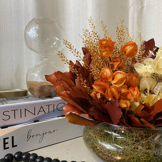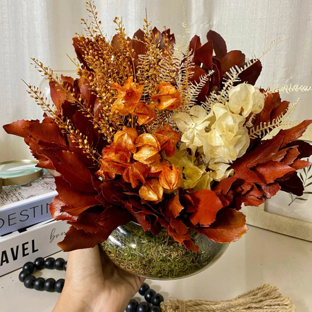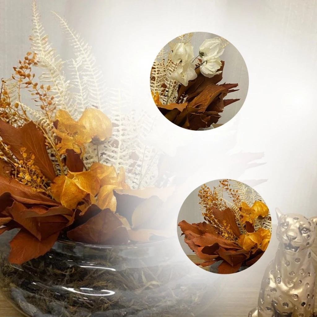- Composição do arranjo: Mix de plantas naturais desidratadas