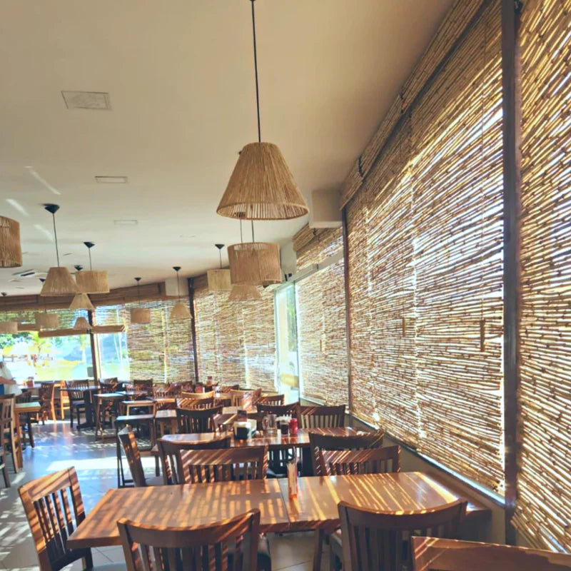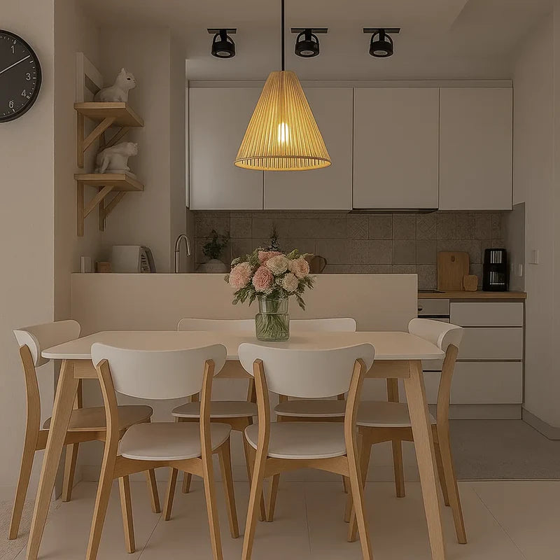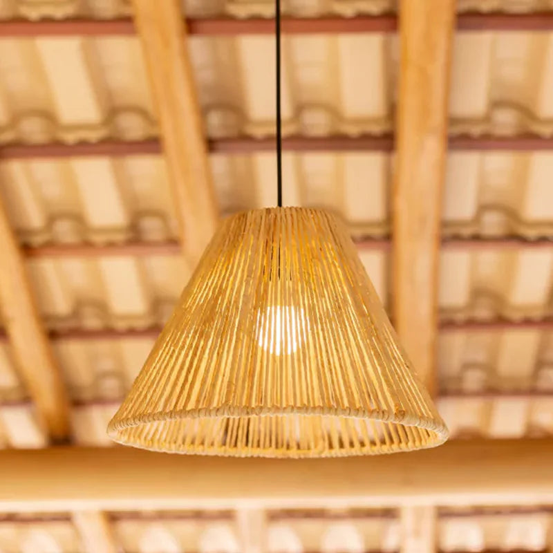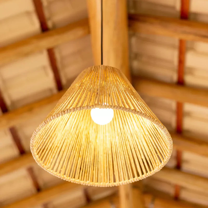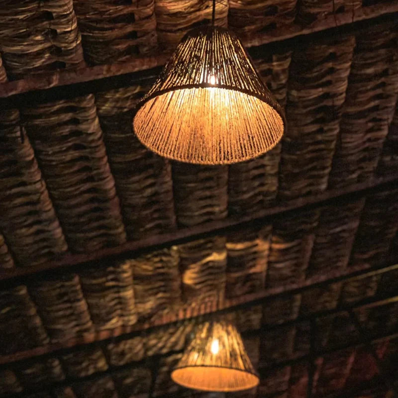 A luminária pendente em palha artesanal adiciona charme e elegância a qualquer ambiente.