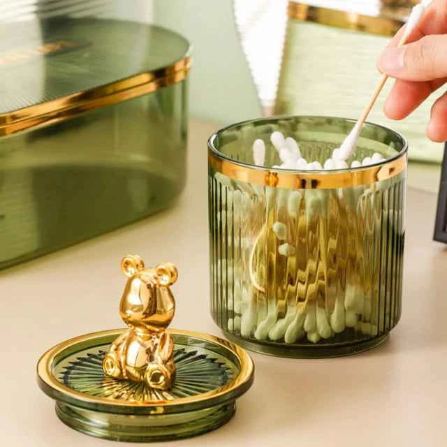 Mantenha seus itens de higiene pessoal organizados e acessíveis com o Organizador Porta Cotonete e Algodão de Acrílico.