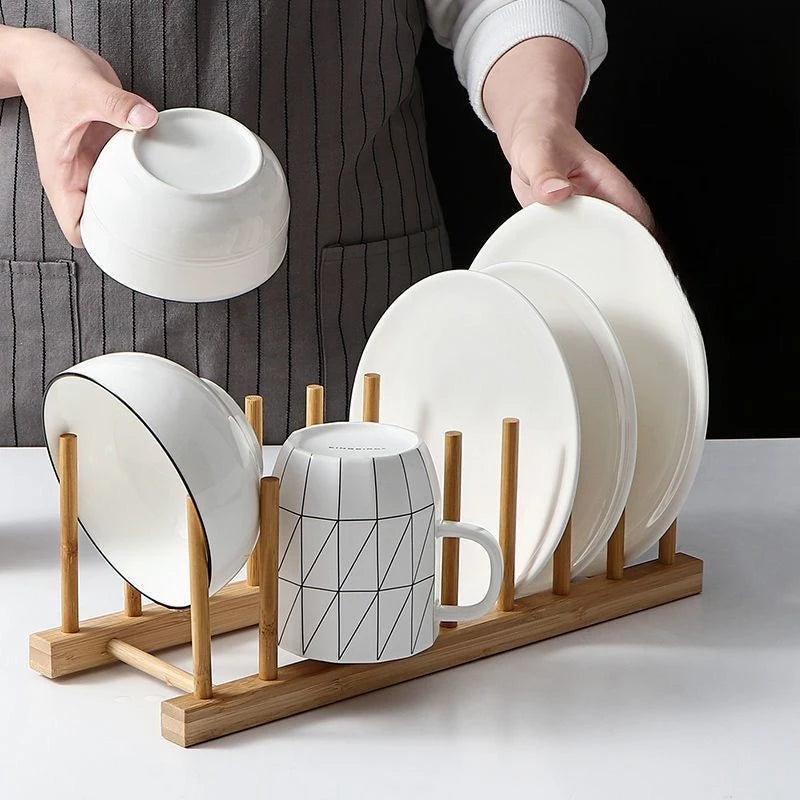 Organize sua cozinha com o Suporte Escorredor Porta Pratos de Bancada de Bambu!