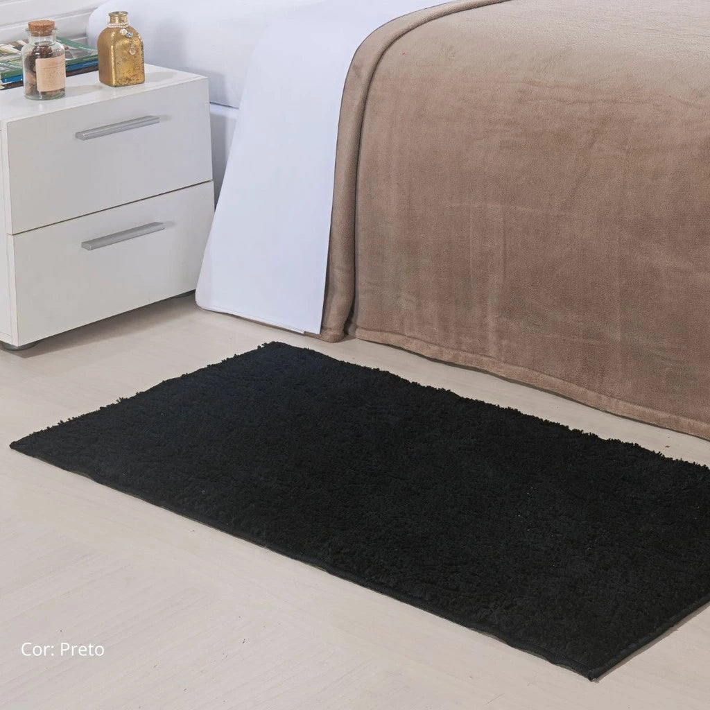 Com uma superfície felpuda e super macia, cria uma experiência confortável ao pisar, tornando o quarto um lugar mais acolhedor e convidativo. Feito para quem valoriza o bem-estar, ele é perfeito para complementar a decoração do ambiente.